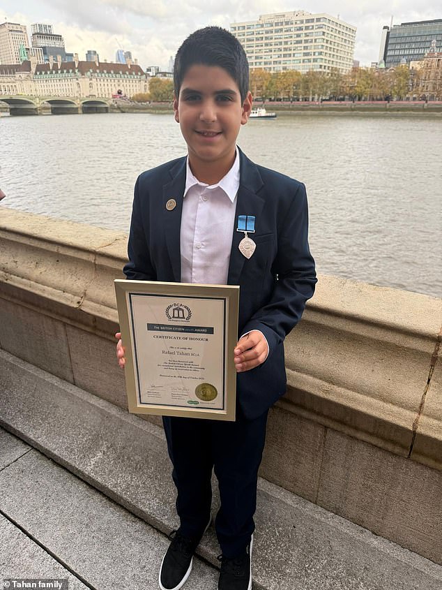 Now, Rafael’s incredible efforts have been recognized after he was awarded The British Citizen Youth Award—supported by The People’s Honours. The young boy and his family traveled to the House of Lords last month where he was presented with the accolade.